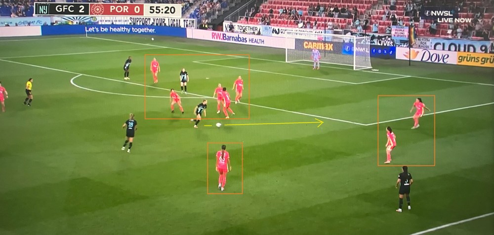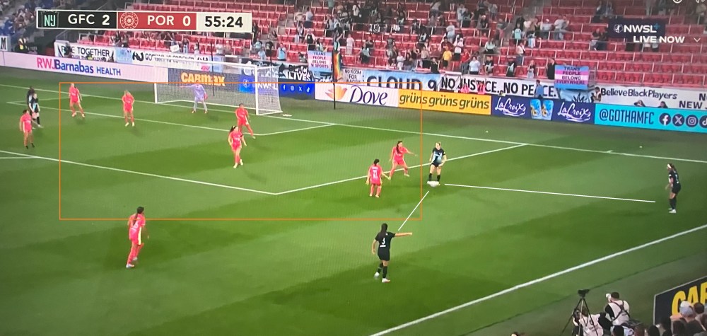 Unfortunately for his club Gotham passed around them like the Amoros-coached tika-taka possession squad they are. On the other end Portland was pinned in their own half most of the match, between Gotham’s counter-press and their own lack of pace and slow movement. The results were predictable